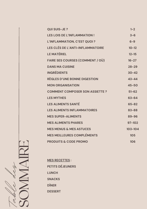 En plus du Guide Anti-Inflammatoire, un bonus GRATUIT : Le E-BOOK • PETITS-DÉJEUNERS & GOÛTERS de 240 pages qui inclus 90 recettes ! (Valeur : 19.90 CHF)